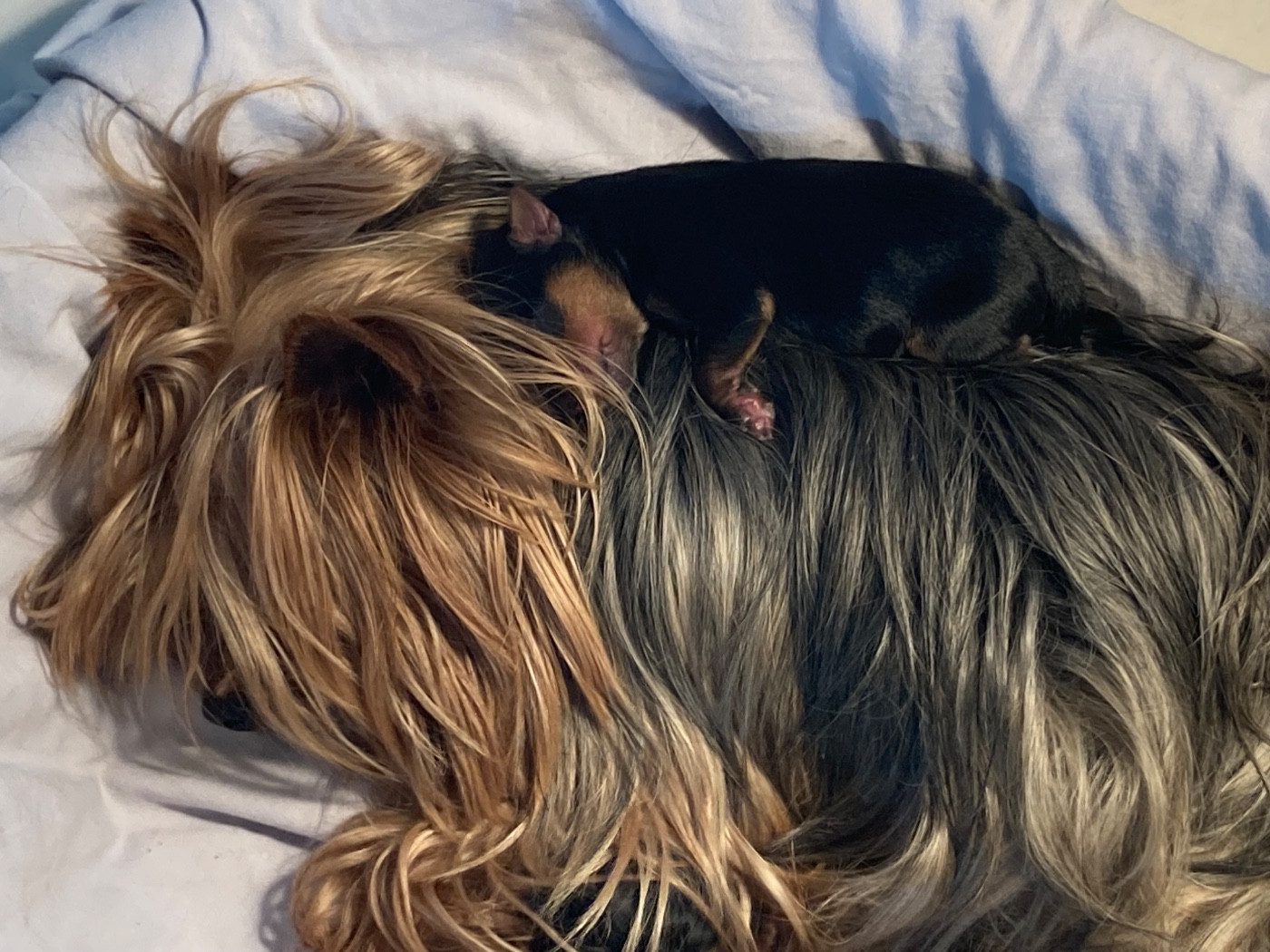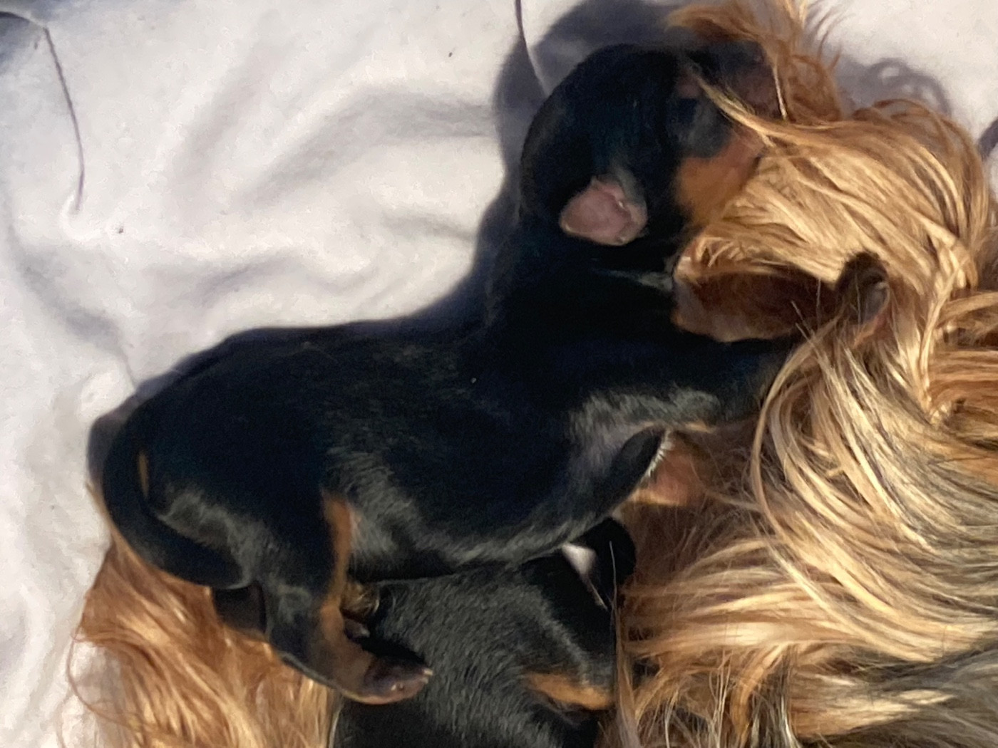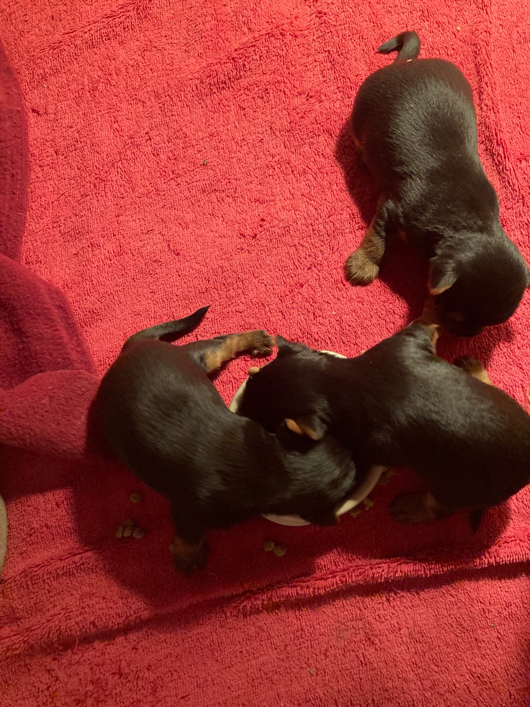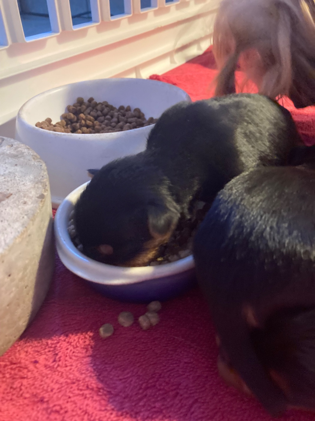 Portée Tamise / Rebel du 15 février 2026 Tiens! Allons voir ce qui se passe dans la gamelle de maman Le trio de choc
